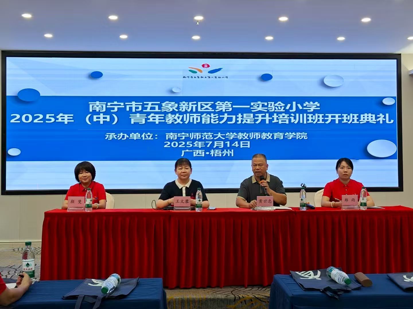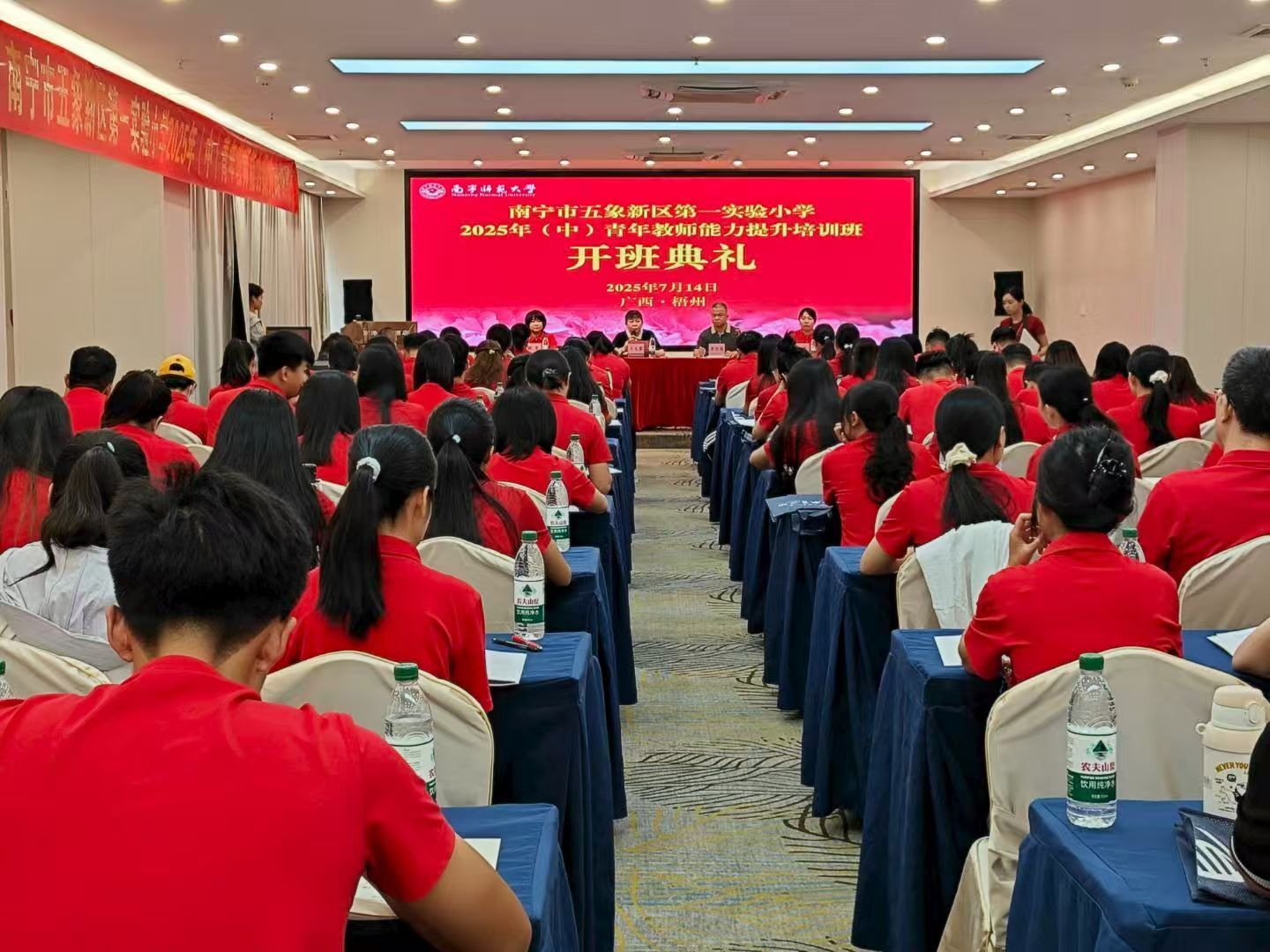 为加强中青年教师队伍建设,助力教育骨干夯实教学基础、提升专业能力,7月19日,由教师教育学院承办的南宁市五象新区第一实验小学2025年(中)青年教师能力提升专题培训班在梧州市圆满收官,80余名(中)青年骨干教师参训,通过“理论+实践+互动”的多维学习模式,实现能力与视野的双重提升,为提升教育教学质量、助力南宁教育高质量发展积蓄力量。